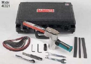 Включают в себя модель 40320 с контактными консолями 11203, 11206 и 11204, восемь абразивных лент, цангу 50010 (1/4 дюйма) и жесткий переносной чемодан.